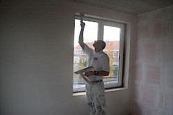 In opdracht van Aannemersbedrijf Kwakkenbos zijn we begonnen met het uitvoeren van het stuc-/spuitwerk van 18 nieuwe sociale huurappartementen aan de Spatterstraat 23-45.