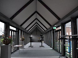 Op het begane grondniveau waren diverse schadeplekken met een lambrisering aan het oog onttrokken.Wij hebben meermaals ervaren dat bij extra vocht-en zoutbelasting in de muren het aanbrengen van een zoutbufferend pleistersysteem niet duurzaam is.Dat was dan ook de reden om in het genoemde project te zoeken naar alternatieven in overleg met het kerkbestuur en de aannemer.