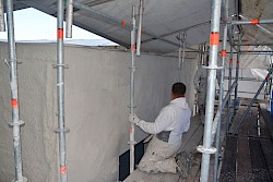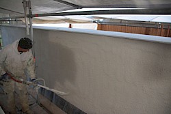 In opdracht van Zederik Bouw B.V.hebben wij luxe drijvende woningen in opdracht gehad die bestaan uit een robuuste betonnen kelderbak met daarop een houtskeletbouw,die wij geheel in de gevelisolatie uitvoeren en afwerken met een mortelweefsellaag die wordt afgewerkt met een traditionele minerale en hydraulische krabpoets afwerking.